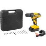 Furadeira e Parafusadeira à Bateria 12V bivolt pfv 012 Com Kit Brocas, Bits e Trena VONDERReferência: 60.01.012.000 APRESENTAÇÃO: Indicada para soltar e apertar parafusos de até 6 mm de diâmetro e fazer furos em madeiras ou metais. Tempo de carregamento da bateria: 3 a 5 horas. Possui regulagem para 18 posições de torque e 1 posição para perfuração, LED para melhor visibilidade do local de trabalho, cabo com revestimento emborrachado, proporcionando maior conforto ao operador, bateria de íons de lítio que confere alta eficiência de operação, indicador de carga da bateria, além de carregador bivolt automático com tensão de entrada de 100 V – 240 V. Sistema de reversão Reversível acompanha: 1 Parafusadeira/furadeira pfv 012.1 maleta.1 bateria de 12V.1 fonte bivolt automática.6 brocas de aço rápido (1,5 mm, 2,5 mm, 3,0 mm, 4,0 mm, 5,0 mm e 6,0 mm).6 bits (2 fendas (5 mm e 6 mm), 2 phillips (PH1 e PH2) e 2 pozidrive (PZ1 e PZ2)).1 soquete magnético encaixe de 1/4 pol.1 Trena. detalhes TÉCNICOS: Tensão da bateria: 12,0V. Tipo de bateria: Bateria de íons de lítio. Capacidade do mandril: 3/8 pol – 10 mm. Tipo de mandril: Aperto rápido. Torque máximo/ força de aperto: 23 N. M (2,3 kgf. M). Capacidade máxima de perfuração em aço: 10,0 mm. Capacidade máxima de perfuração em madeira: 16,0 mm. Capacidade de furação no concreto: N/A. Tipo de velocidade: Variável. Rotação da Furadeira/parafusadeira: 0 – 650 rpm. Sistema de reversão: Reversível. Impactos por minuto (ipm): N/A. Tensão do carregador de bateria: 100 V – 240 V – Bivolt automático. Frequência (Hz): 50 Hz/60 Hz. Segue norma: abnt nbr iec 60745-1, abnt nbr iec 60745-2-1 e abnt nbr iec 60745-2-2. Massa aproximada: 1,09 kg. Marca: VonderGarantia – E (cdc): Garantia legal: 90 dias + Garantia contratual: 9 meses* Imagens meramente ilustrativas. * A marca da trena pode variar conforme disponibilidade do estoque.